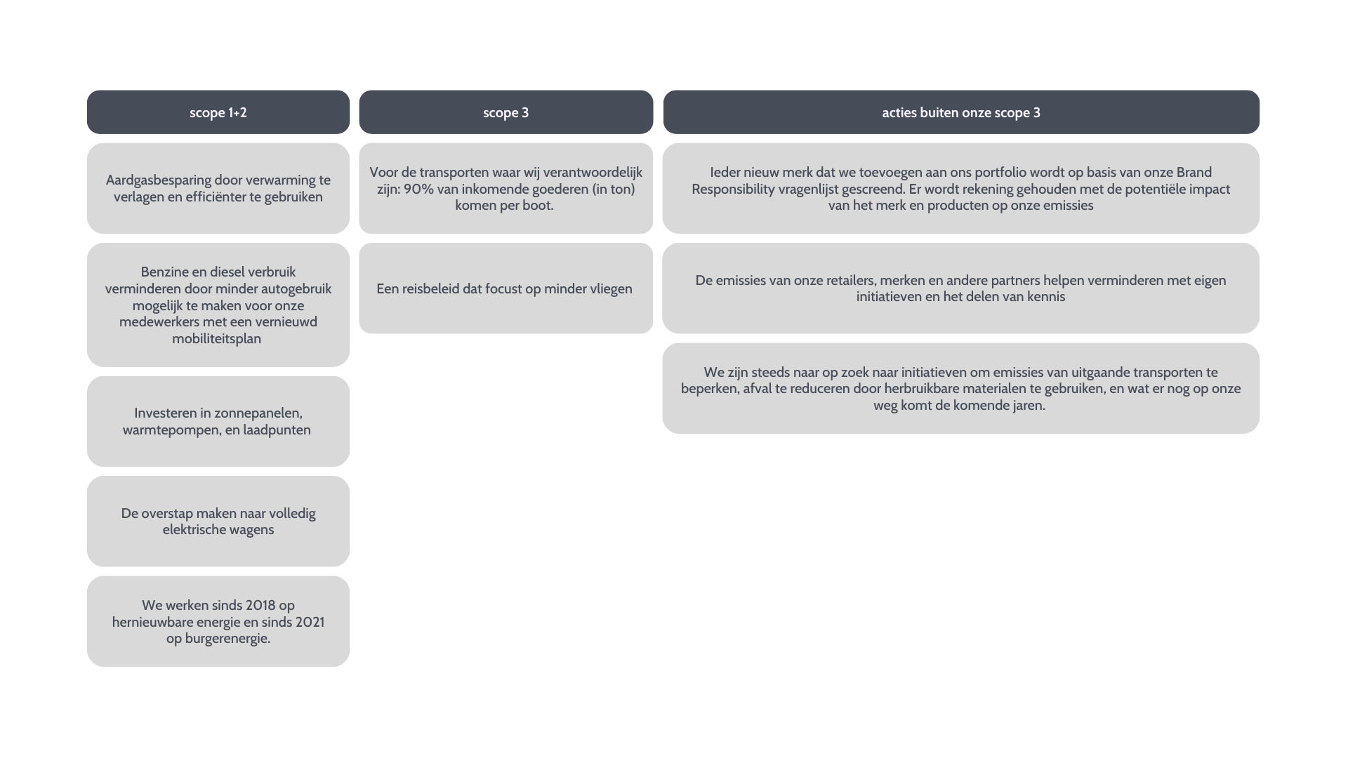 We currently don't measure incoming transport of our other brands, nor the production and use of any products we sell. We hope to be able to add this in the future in a reliable and time-efficient way.