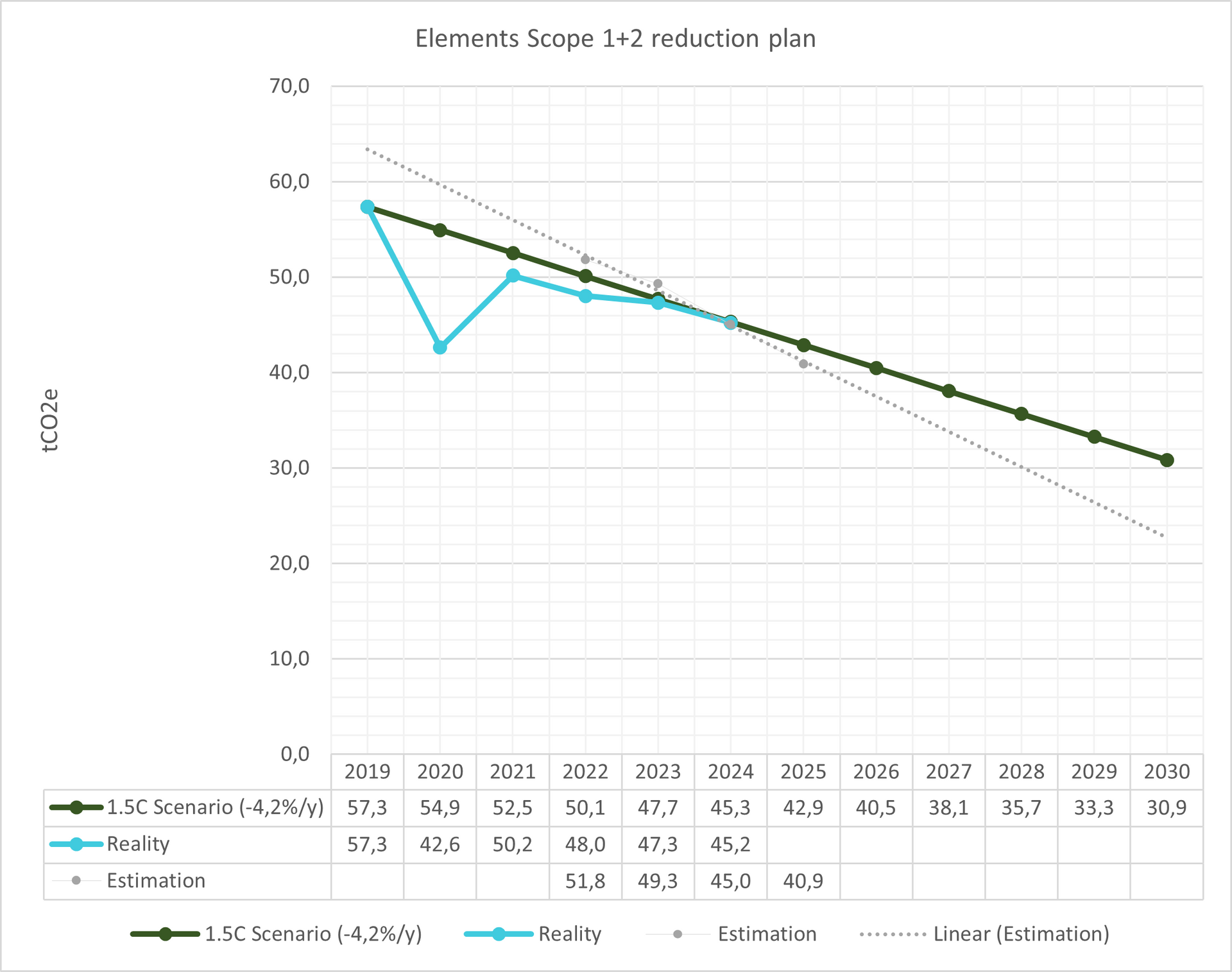 Elements has been calculating its carbon footprint (CO2e) since 2019. This project was initiated in collaboration with our sustainability coordinator, Nelson, and CO2logic, an independent environmental consultancy. Calculating your emissions is essential for developing an emissions reduction plan.
